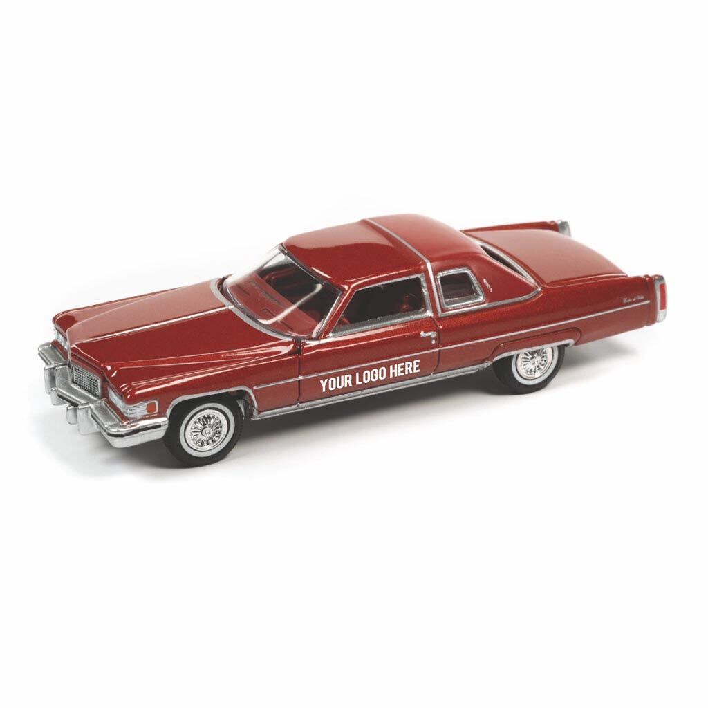 3″ 1:64 Scale Diecast Metal 1975 Cadillac Coupe DeVille. Red color. Opening Hood ! Ideal for promotions involving Luxury and the 1970’s. Part of our Primer Luxury Series. Ask about our optional Item # 1/64CD3 Acrylic Display Case bringing this promotional vehicle to a brand new level (see orange Dodge Charger image).